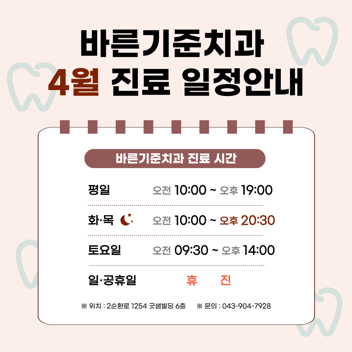 바른기준치과 26년 4월 진료일정 안내